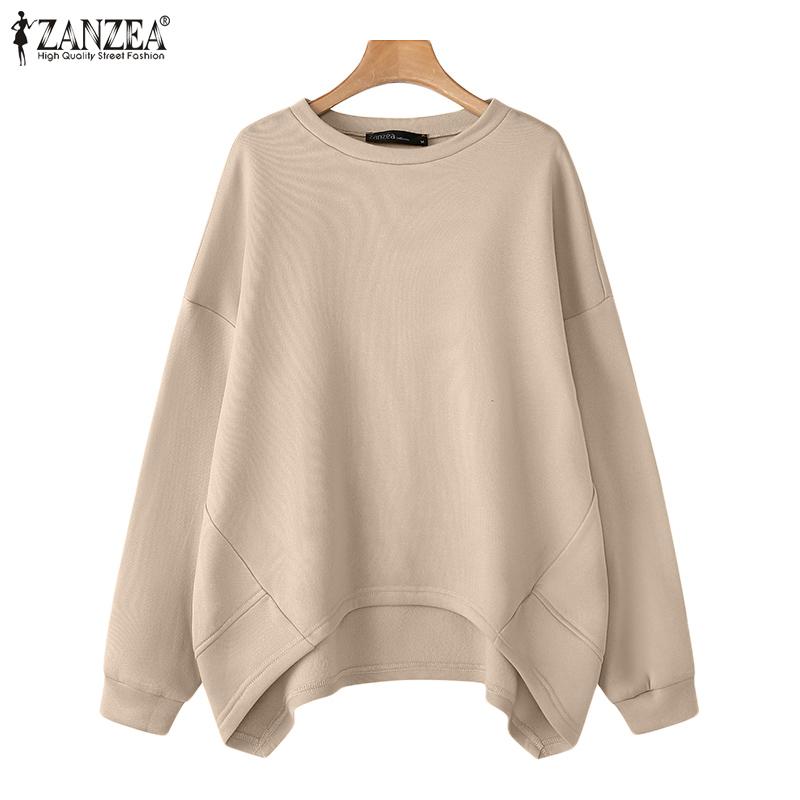 ZANZEA Women Casual O-neck Long Sleeve Asymmetry Hem Pullover Sweatshirts