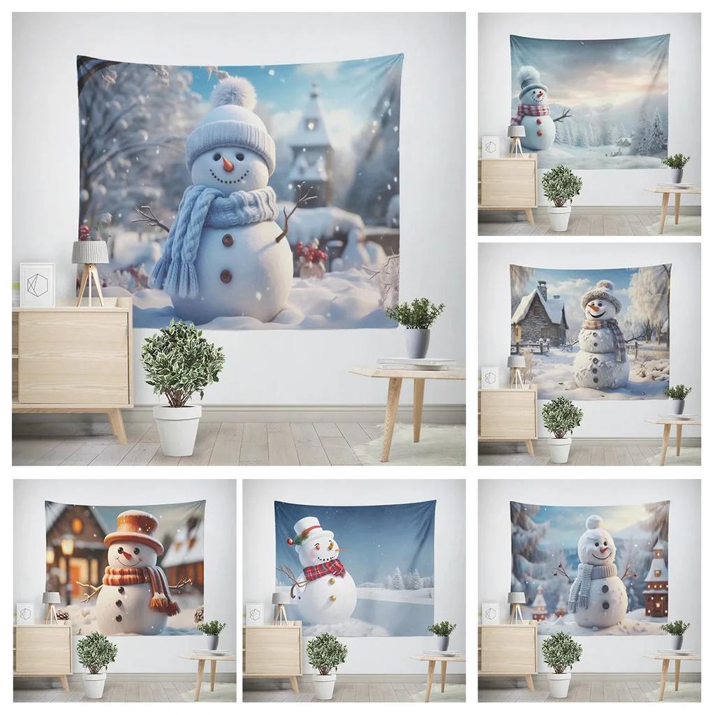 New Year Christmas Snowman Pattern Tapestry Living Room Sofa Home Decor Christmas Gift