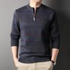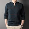 Men's Casual Striped Knit Sweater With 1/4 Zip, Long Sleeve Polyester & Acrylic Blend Top, Mature Style