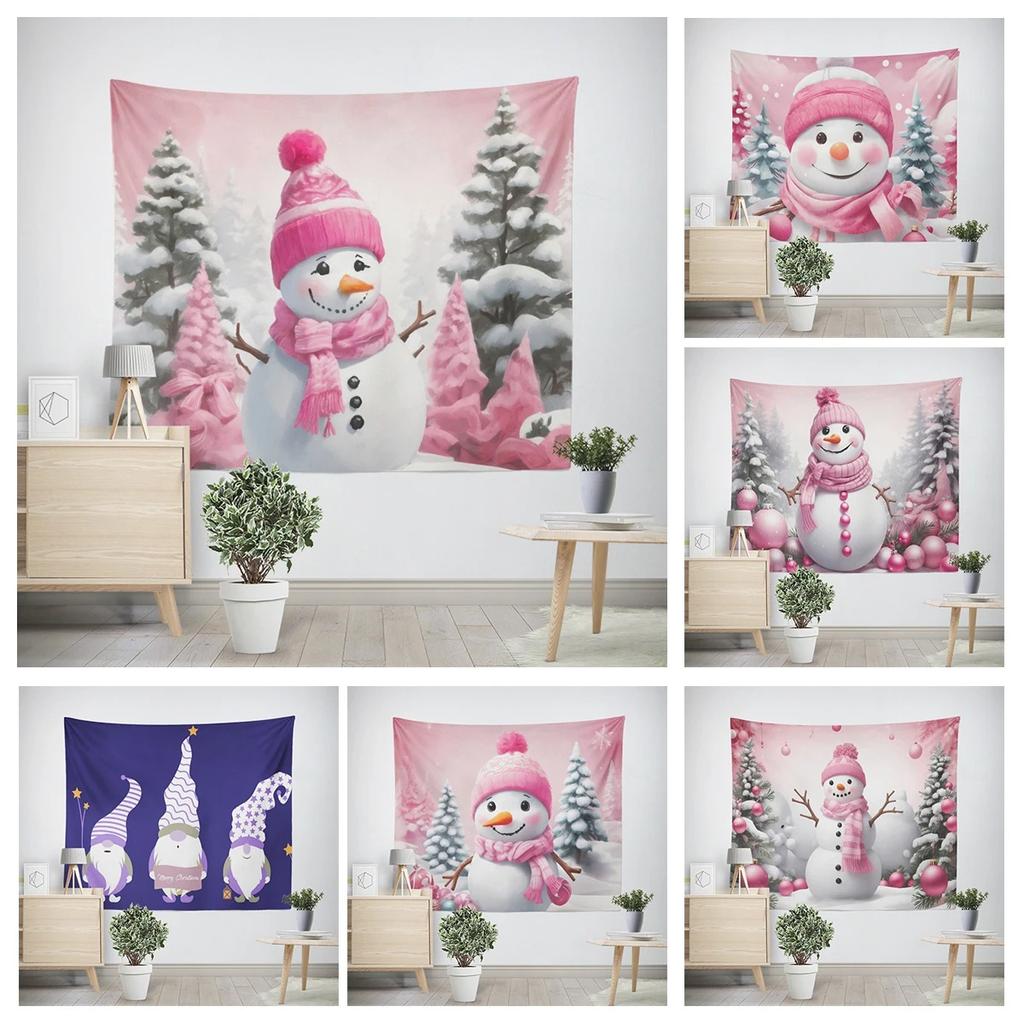 Christmas New Year Pink Snowman Pattern Living Room Bedroom Decorative Tapestry