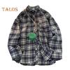 Spring Fall Men Shirt Turn-down Collar Plaid Printing Loose Button-down Retro American Style Long Sleeve Streetwear Top for Travel Daily Wear