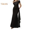 Enhance your wardrobe with this elegant solid color dress for women. The dress features a unique design with ties that can be used as a waist decoration, adding a touch of sophistication. Its off neckline and irregular design give it a modern twist, reminiscent of a sloped collar.