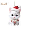 Cat Kitten Pendant with Hat Car Rearview Mirror Hanging Ornament Decor Acrylic Cartoon Car Interior Decoration Christmas Gift