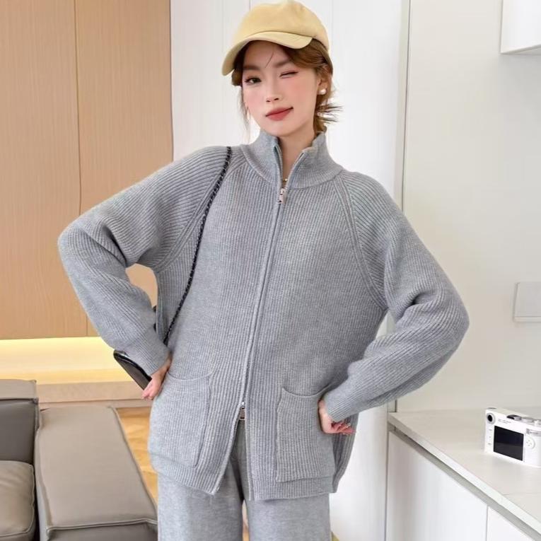 DIMANAF 2024 Autumn Women Solid Zipper Sweaters Knitting Pocket Casual Style Turtleneck Loose Pullover Sweater
