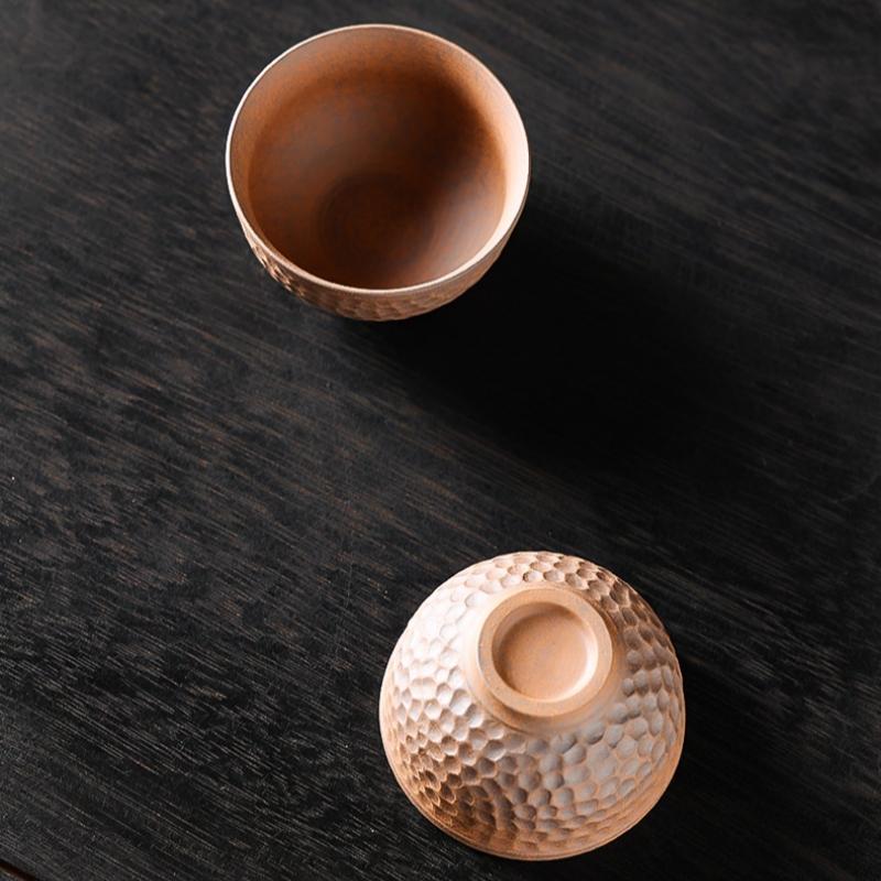 2/PCS 90ml Coarse Pottery Handmade Stoneware Tea Cup Kung Fu Tea Set Tea Cup Small Single Cup Ancient Style Quiet Road Cup Bowl