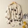 Summer Literature Loose Cotton Linen Printed V-neck Five Quarter Sleeved Shirt Women's Pullover Shirt Top