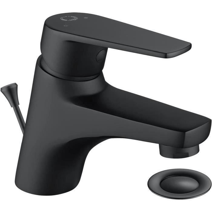 CECIPA Basin Mixer Tap with Drain Lever Black Brass