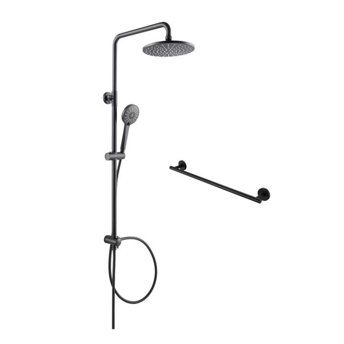 Shower Column - Black - Stainless Steel - Adjustable Height - Hand Shower Included - Adjustable Wall Mounting