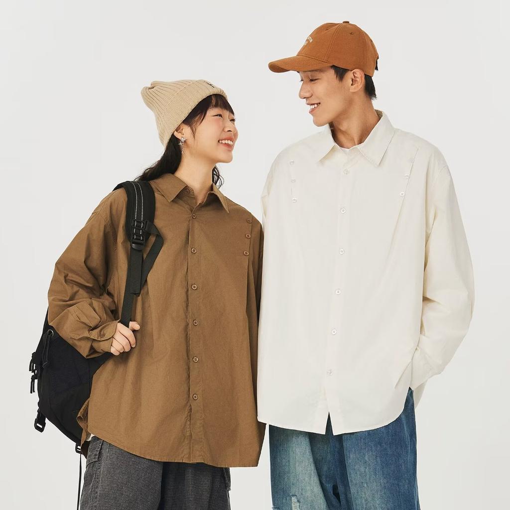 2024 Overalls Long Sleeve Shirt Japanese Hong Kong Style Ins Loose Shirt Boys Summer Trendy Versatile Casual Coat
