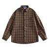 American Casual Brown Plaid Shirt Coat Boys and Girls College Style Blouse Simple Loose Retro Long Sleeve Top