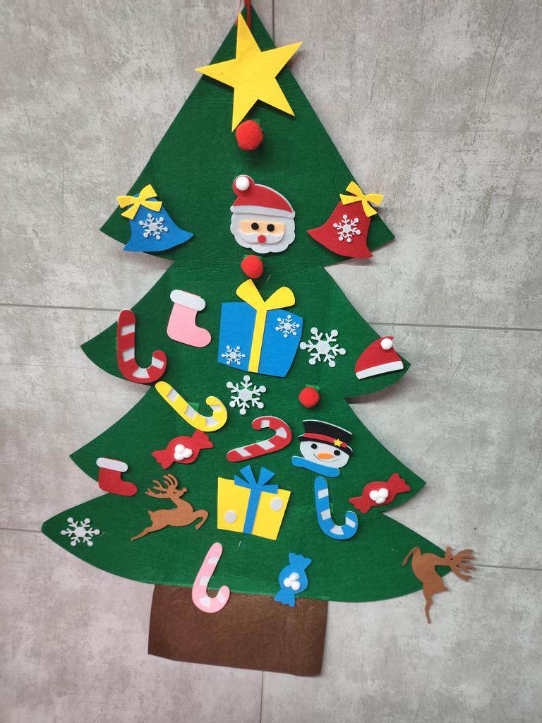 - 【DIY Felt Christmas Tree Set】: This set comes with a variety of detachable ornaments including Santa Claus, snowman, snowflakes, Christmas stockings, Christmas hats, candies, and bells. It's great for decorating your home for a festive Christmas party