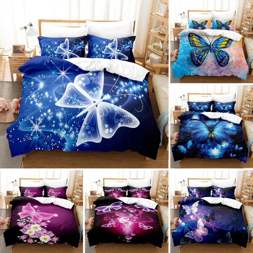 Magic Butterfly Pattern Duvet Cover with Pillow Cover Bedding Set Single Double Twin Full Queen King Size Home Bed Cover Set