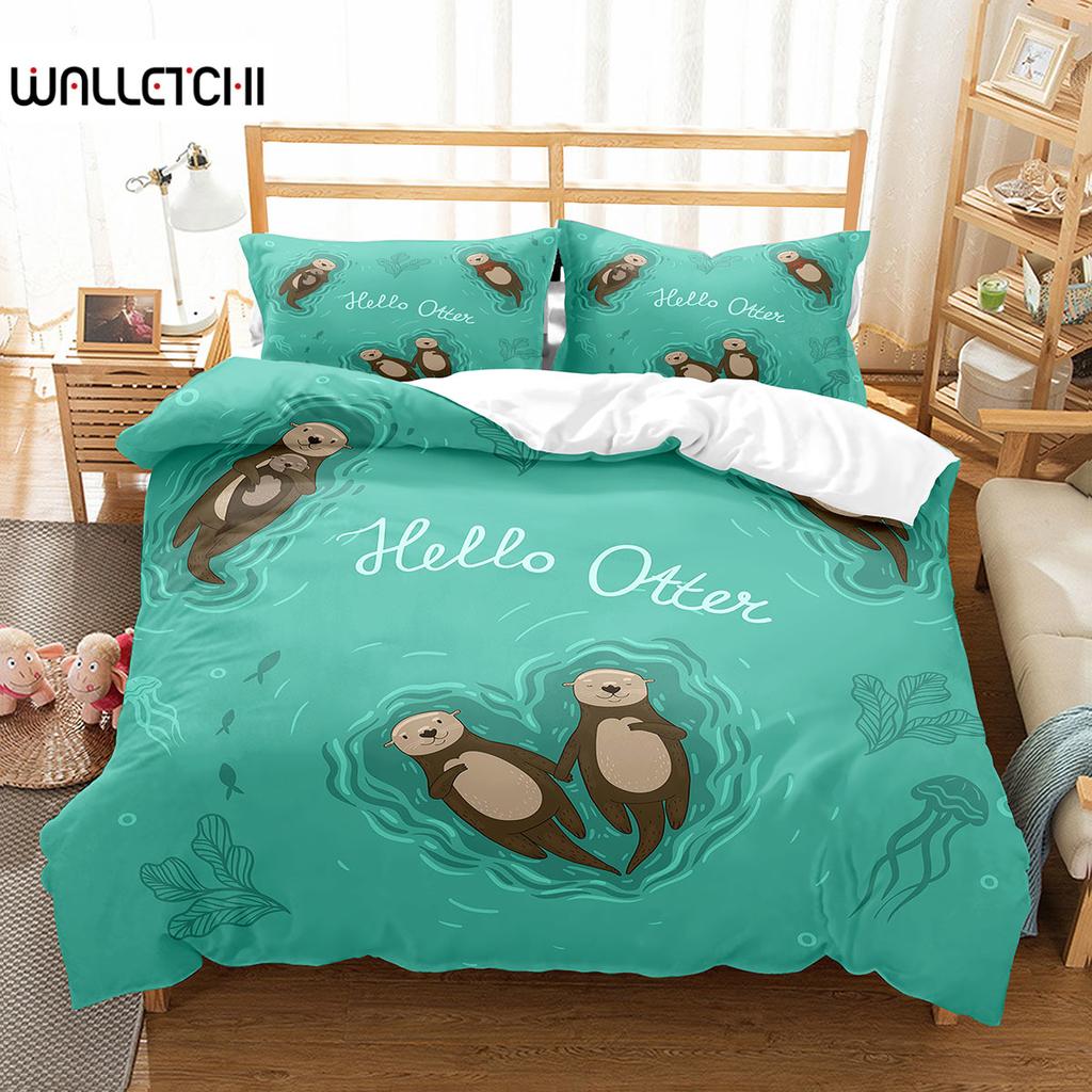 Sea Otters Duvet Cover Set Sea Animals Cute Kawaii Comforter Cover King Queen Double Size For Kids Boys Girls Teens Bedding Set