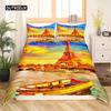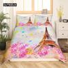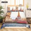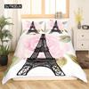 Valentine Day King Queen Duvet Cover Paris Eiffel Tower Bedding Set Pink Watercolor Tulips Flowers Balloon Polyester Quilt Cover