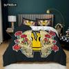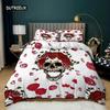 Skull Duvet Cover Queen Size Gothic Skeleton Bedding Set Rose Flower Polyester Comforter Cover for Kids Teens Adults Halloween