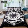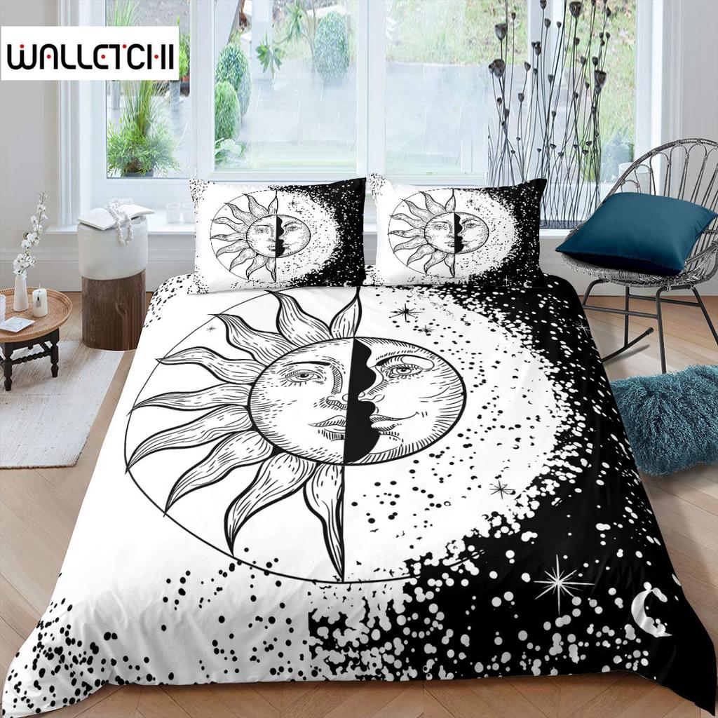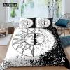 Sun Moon Duvet Cover Set Queen Microfiber Bohemian Black and White Print Yin Yang Comforter Cover Galaxy Star Twin Bedding Set