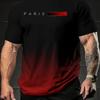 Summer Men's Gradient Paris Letter 3D Printed T-shirts Gradual Change Color Round Collar Short Sleeve Tops Tees, Outdoor Cloth