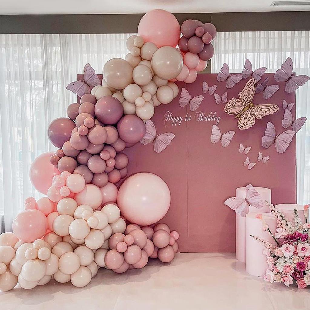 Macaron Pink Orange Balloons Garland Arch Kit 3D Gold Hollow Butterfly For Birthday Gender Reveal Party Decoration 2024