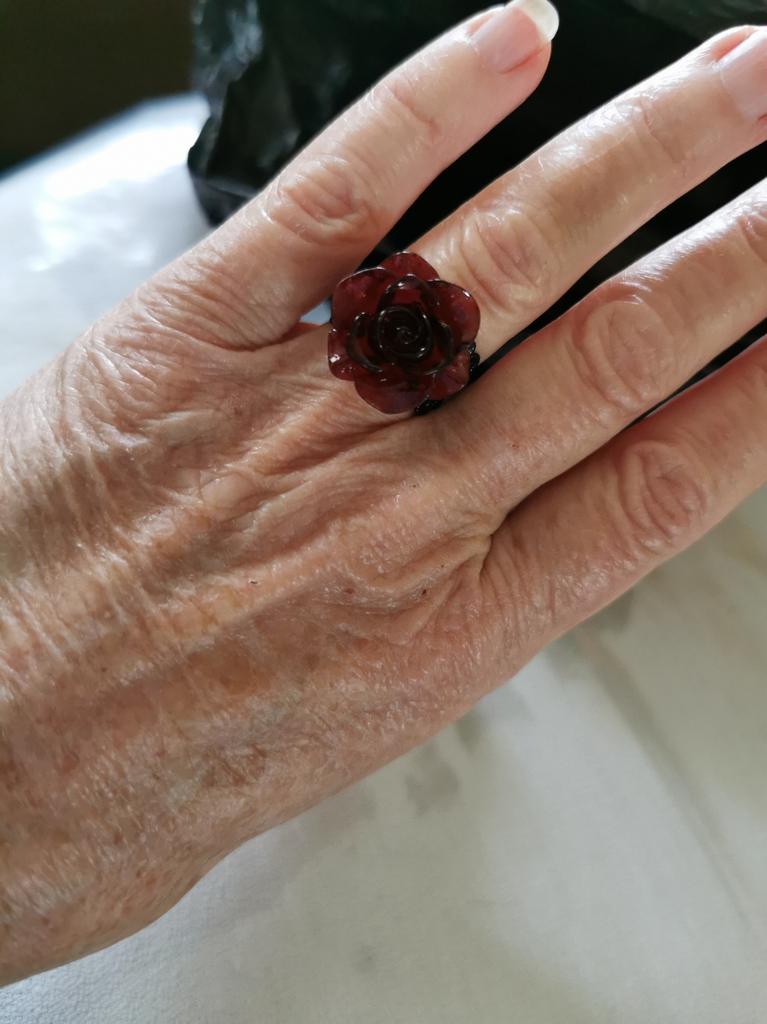 As in the photo, the red is transparent but dark and the flower is large unlike its support which is very delicate 🤩💪👍