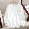 Women's Cotton White Long-sleeved T-shirt Base Shirt Spring and Autumn Loose Crewneck Sweatshirt