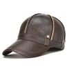 Men's Genuine Leather Baseball Caps Cowhide Snapback Hats Keep Warm Leather Cap Adjustable Size