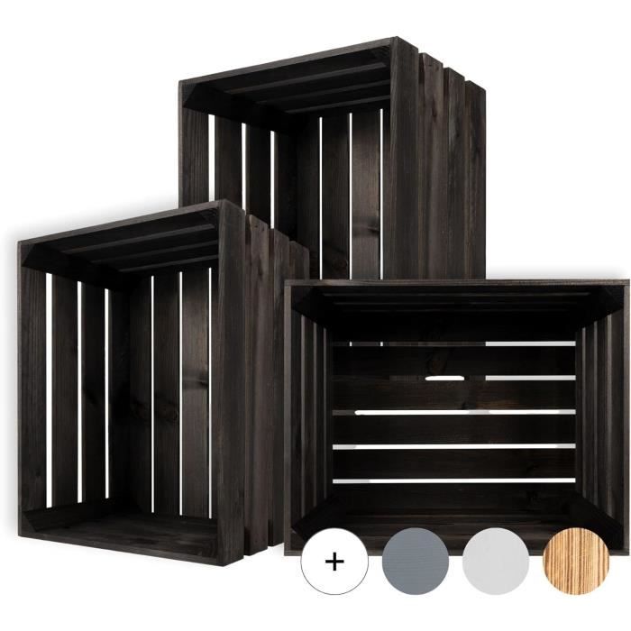 Creative Deco Lot De 3 Caisse En Bois Noir 50 X 40 X 30 Cm | Caisse Rangement Bois | Caisse En Bois Vintage | Cagette En Bois