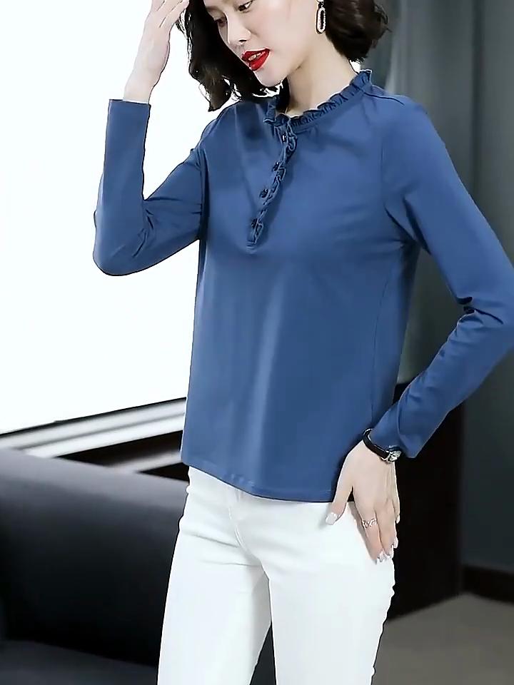 YYFS Women's Fashion Casual Spring Fall Solid Color Print Long Sleeve O-Neck Blouses & Shirts