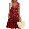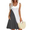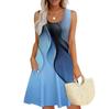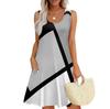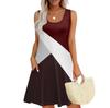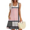 Women's Summer Casual Square Neck Patchwork Printed Dress Sleeveless Dress With Pockets