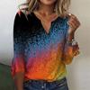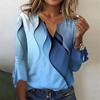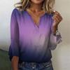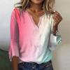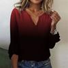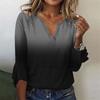 Women's Fashion Top Casual V-neck Printed Blouses Bell 3/4 Sleeve T-shirt
