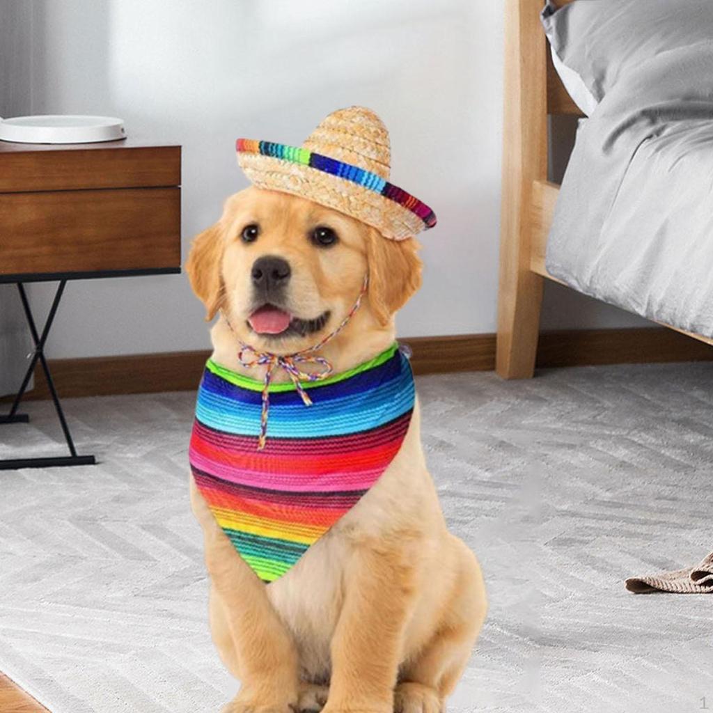 Sombrero for Dogs, Straw Hat, Mexican Bandana, Funny Cute Photo Props Costume, Pet Triangle Bib