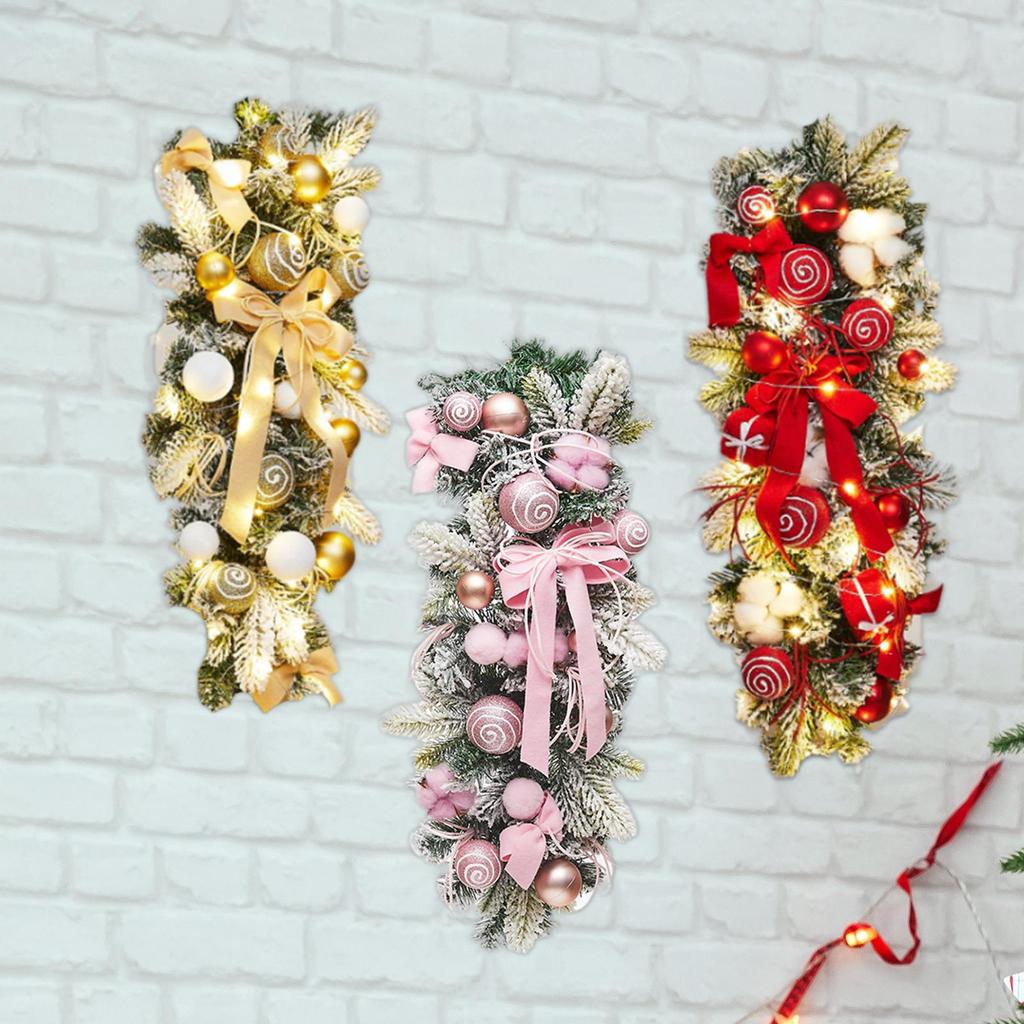 Christmas Stairway Swag with Lights Decorative Teardrop Swag Wreath for Background Wall Home Fireplace Mantle Window Outdoor