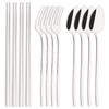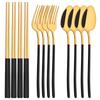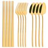 Silver Stainless Steel Flatware Cutlery Set Sushi Sticks Dinner Set 12Pcs Dinnerware Korean Chopsticks Fork Spoon Dinnerware