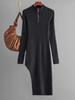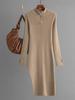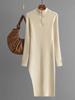 Zipper Knitted Dresses Women 2024 Autumn Winter Half Turtleneck Long Bodycon Solid Dress For Women Thigh Midi Slit Dresses