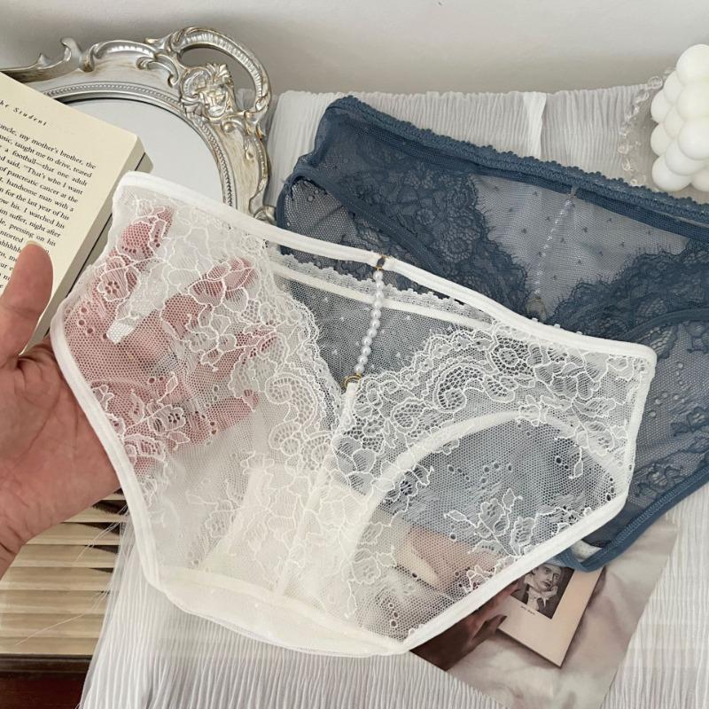 Lace Underwear for Girls Pure Desire Sexy Hollow Briefs Pearl Pure Cotton Crotch Triangle Panties