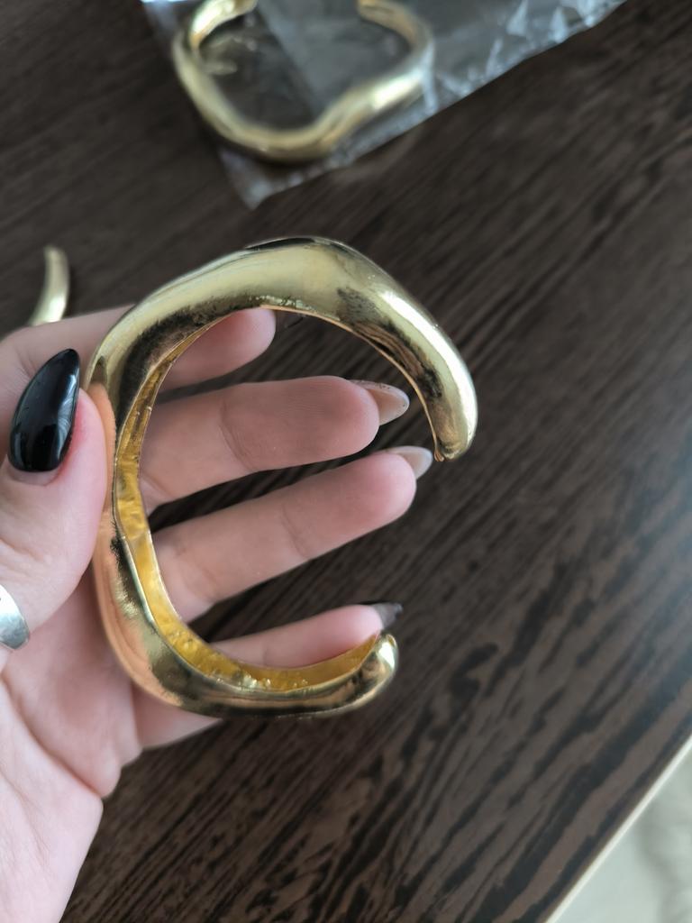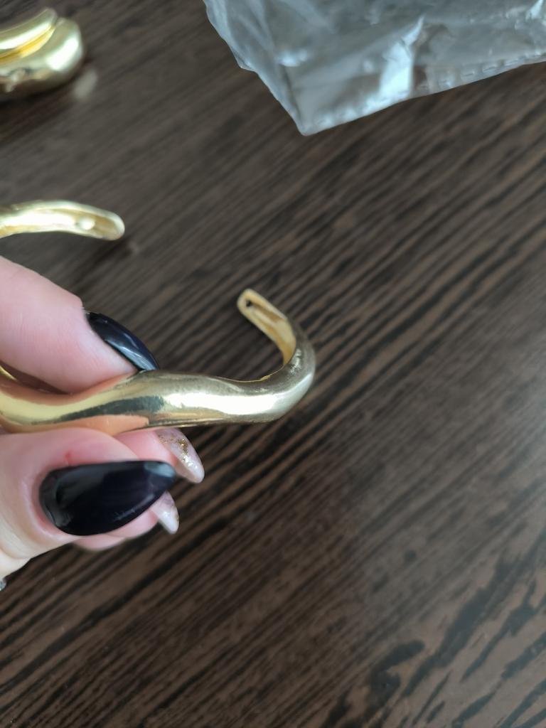 Strongly disappointed. The bracelets are metal (although not plastic, and that's good), heavy. But the coating is uneven, poor quality, somehow either worn or damaged, I can't tell - rubbed off. It feels like they have already been worn repeatedly before. I hope the defects are noticeable in the photo - this is not condensation from temperature changes and not just a reflection, these are actual abrasions. I wouldn't say I had any overly high expectations, but this is still much worse. Unpleasant, I won't wear them, I will return them. Disappointed.