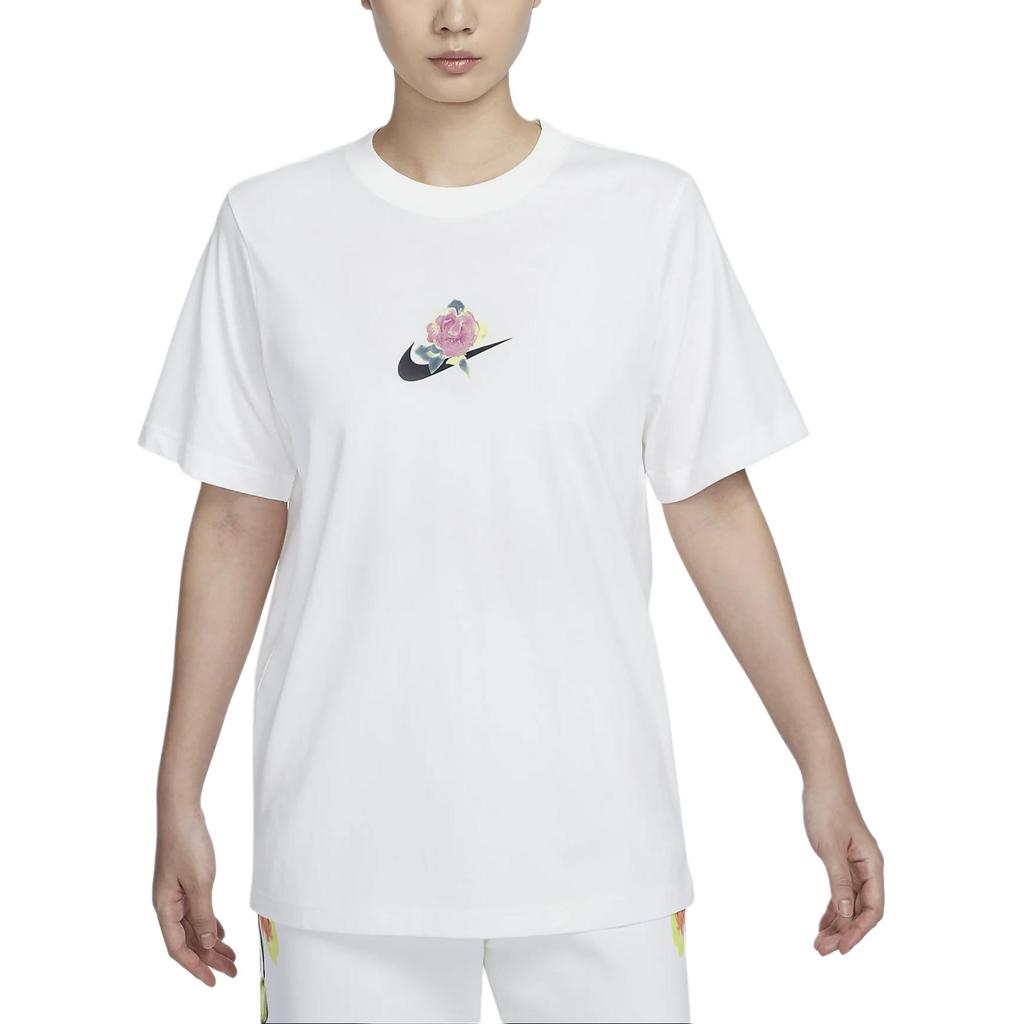 Nike Sportswear Artist Collection Floral Logo Graphic Crew Neck T-Shirt Women T-Shirts White HF4684-133