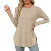 Womens Long Sleeve Round Neck Shirts Side Split Basic Loose Tunic Tops Casual Shirts