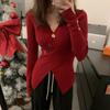 Autumn Long Sleeve Casual V-neck Pullovers Sweaters Women Chic Cross Slim Fit Women's Knitted Sweater Tops Elegant Solid Fashion Winter Jumpers 25667