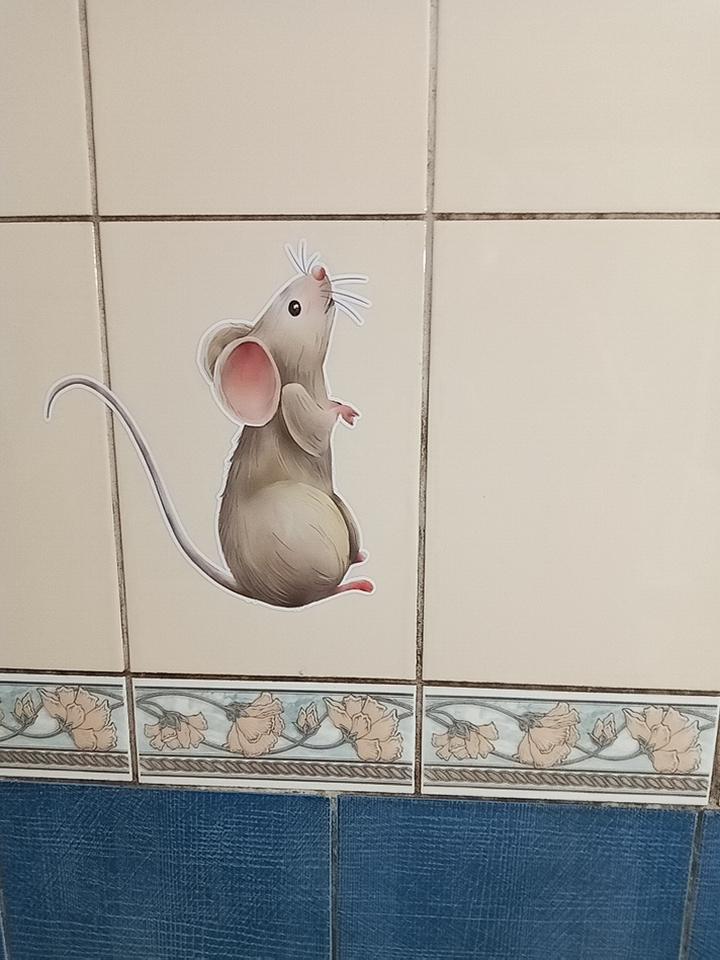 Mouse Looking Up Funny Toilet Stickers Cartoon Urination Toilet Lid WC Door Sticker Removable Self-Adhesive Decor