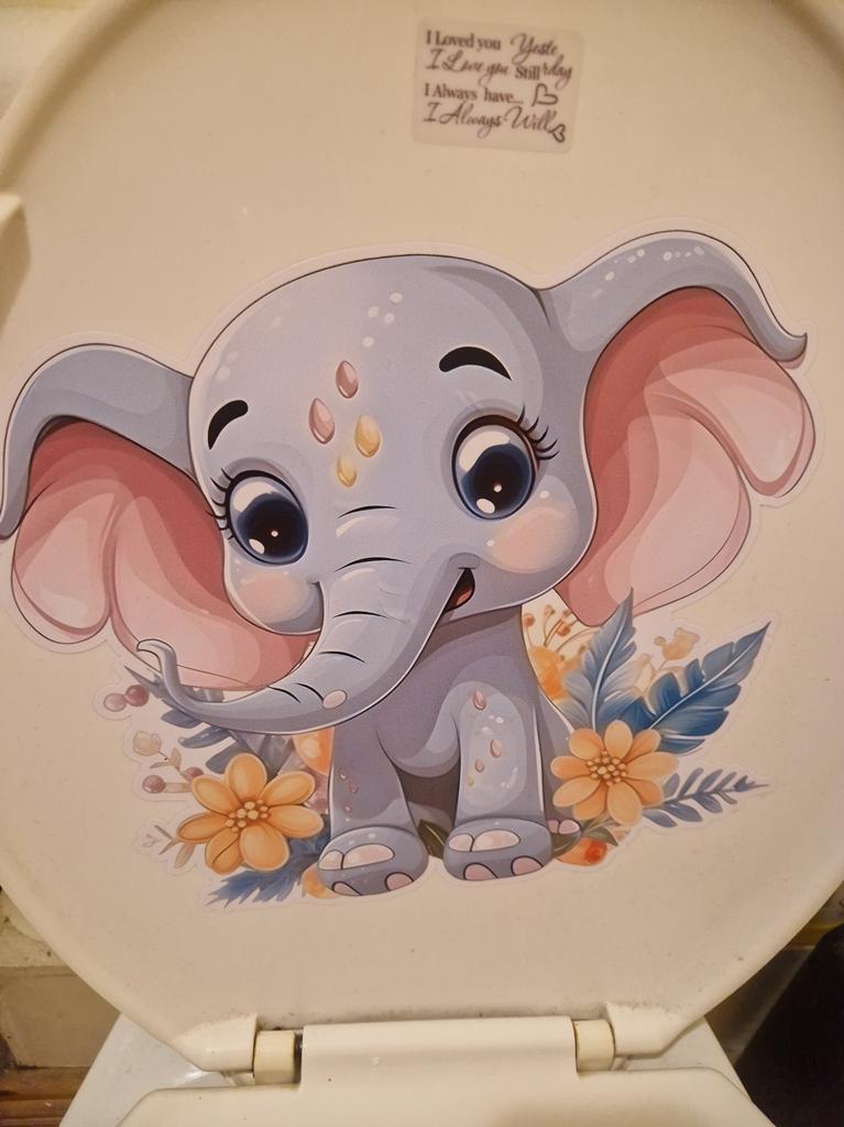 Beautiful Colored Baby Elephant Toilet Seat Stickers Self-adhesive Animal Stickers Toilet Bathroom Decoration Water-proof Decal