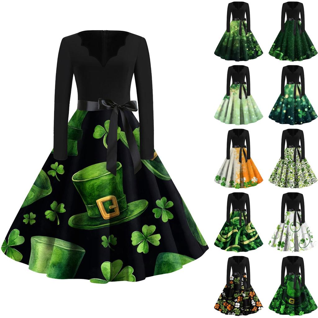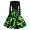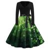 Women's Fashion V-neck Casual Slim St. Patrick Print Long-sleeved Dress