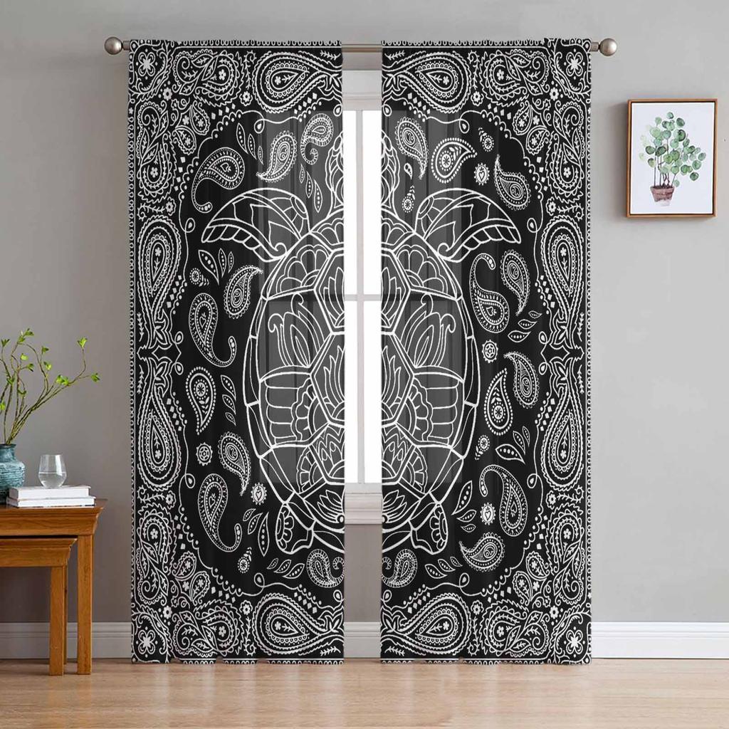Abstract Texture Turtle Paisley Retro Black Sheer Curtains for Living Room Decor Window Curtains Kitchen Tulle Voile Curtains
