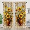 3D 2panels Black Sunflower Printed Curtain, Rod Pocket Curtain For Bedroom Office Kitchen Living Room Study Home Decor