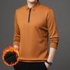 Autumn and Winter Plus Velvet Zipper Polo Shirt Male Fashion Turn-Down Collar Long Sleeve Business Men Clothes