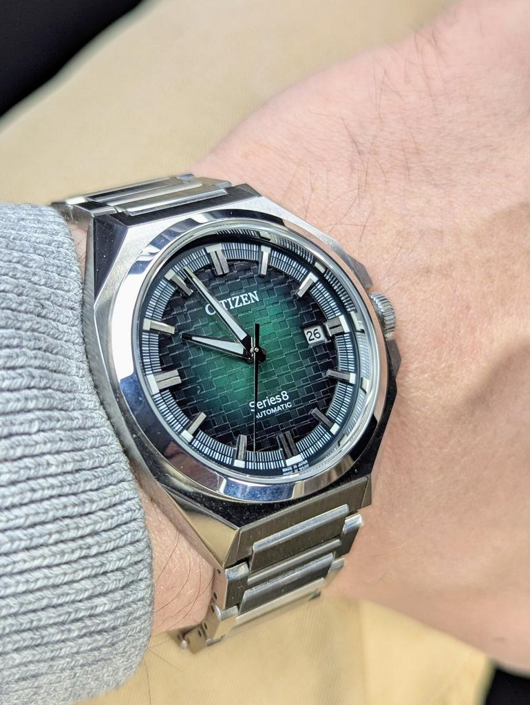 Citizen Series 8 Stainless Steel Green Dial Automatic NB6050-51W 100M Men's Watch