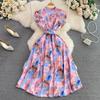 YYFS Women's Fashion Summer Spring Colour Block Print Short Sleeve O-Neck High Waist Casual Dresses