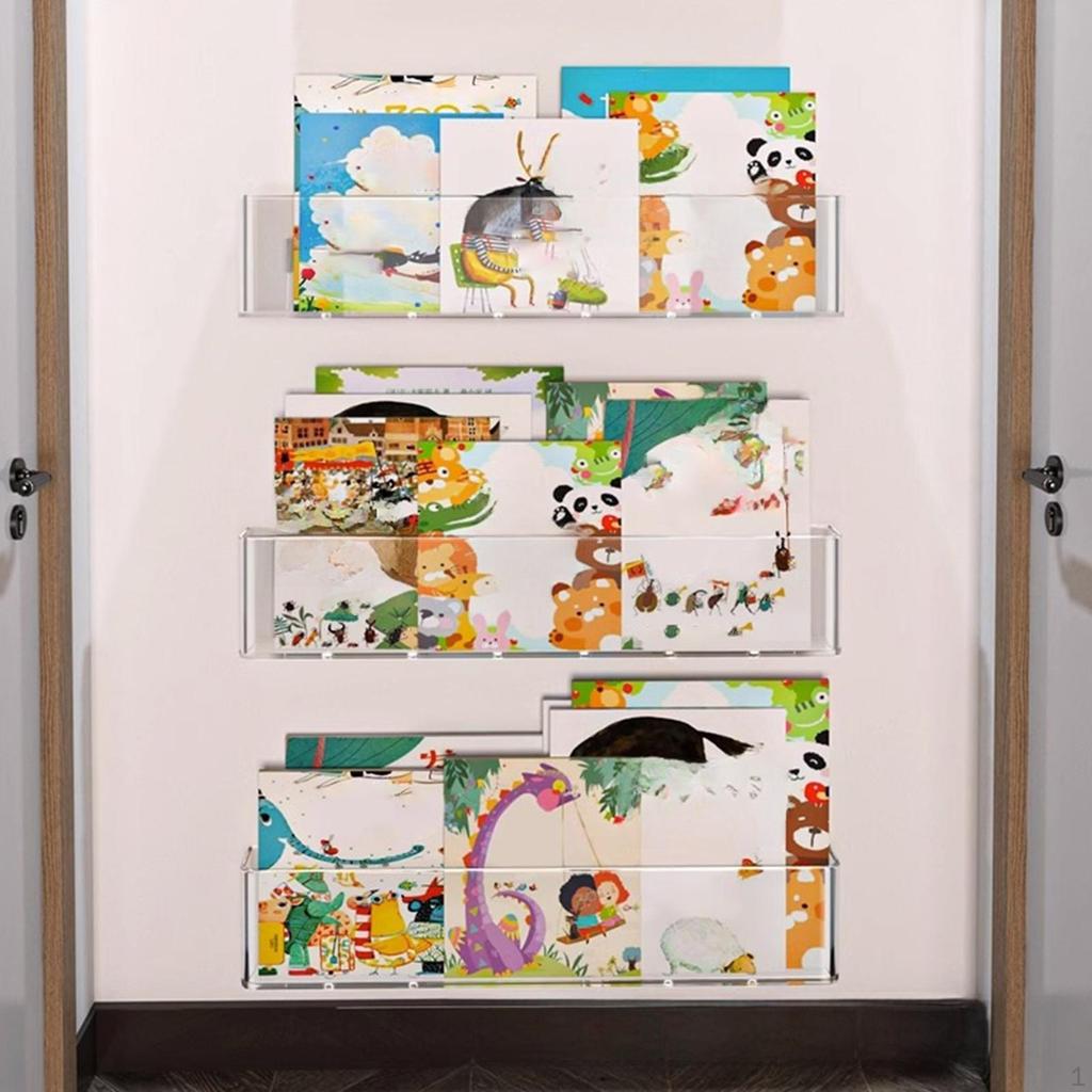 - 【MULTIPLE USES】: Clear floating bookshelf can be used to store your cosmetics, books, magazines, toys, photo frame, calendars, and many other items.