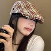 Hat Female Retro Beret Versatile Plaid Showing Face Small Painter Hat Big Head Circumference Reverse Forward Hat