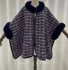 Cloak Shawl Fleece Thickened Plaid Fur Collar Fringed Knitted Shawl Large Size Wool Jacket 0964