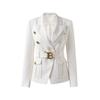 Classic Style Office White Black Women Pocket Blazers with Blet